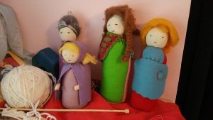 En una cesta podemos dejarles diferentes telas de colores, preferiblemente de algodón o seda, sombreros, delantales, zapatos viejos, chales, toquillas… También puede ser interesante elaborar a mano pequeños muñecos de pie con los que representar teatrillos o para que los niños puedan inventar sus propias historias.