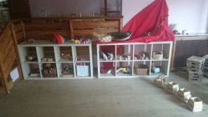 Cuando llegan por la mañana, todo está en su sitio y de forma que invite a tocarlo, usarlo y jugar con ello. Y aquí empieza la fantasía y los sueños que vivirán ese día, su mundo mágico, el que solo ellos pueden crear con pocos objetos y adecuados para ayudarles a desarrollar su creatividad y fantasía infantil.